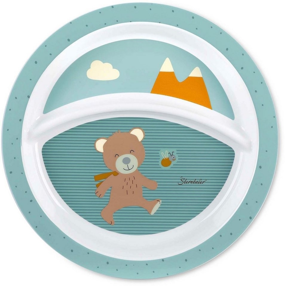 Der Sterntaler Kinderteller Ben mit einem Durchmesser von 21,8 cm ist ideal für kleine Essanfänger. Aus lebensmittelechtem Polypropylen gefertigt, bietet er ein niedliches Bärenmotiv und eine praktische Abtrennung, um verschiedene Speisen getrennt zu halten. Der rutschfeste Unterteil sorgt für sicheren Halt, während der Teller spülmaschinengeeignet ist. Bitte beachten Sie, dass der Teller nicht für die Mikrowelle geeignet ist und nur unter Aufsicht von Erwachsenen verwendet werden sollte. **Highlights** - Kinderteller mit niedlichem Bärenmotiv - Mit rutschfestem Unterteil für sicheren Halt - Abtrennung im Teller für getrenntes Essen - Leichtes Aufnehmen des Essens mit Löffel oder Gabel - Lebensmittelecht, spülmaschinengeeignet, nicht für die Mikrowelle geeignet **Produkteigenschaften** - Durchmesser: 21,8 cm - Material: Polypropylen - Empfohlen ab 6 Monaten - Pflegehinweise: Spülmaschinengeeignet, nicht für die Mikrowelle geeignet **Lieferumfang** - 1 Sterntaler Baby-Teller, Bär Ben - Alter: Für Babys ab 6 Monaten - Mehrfarbig