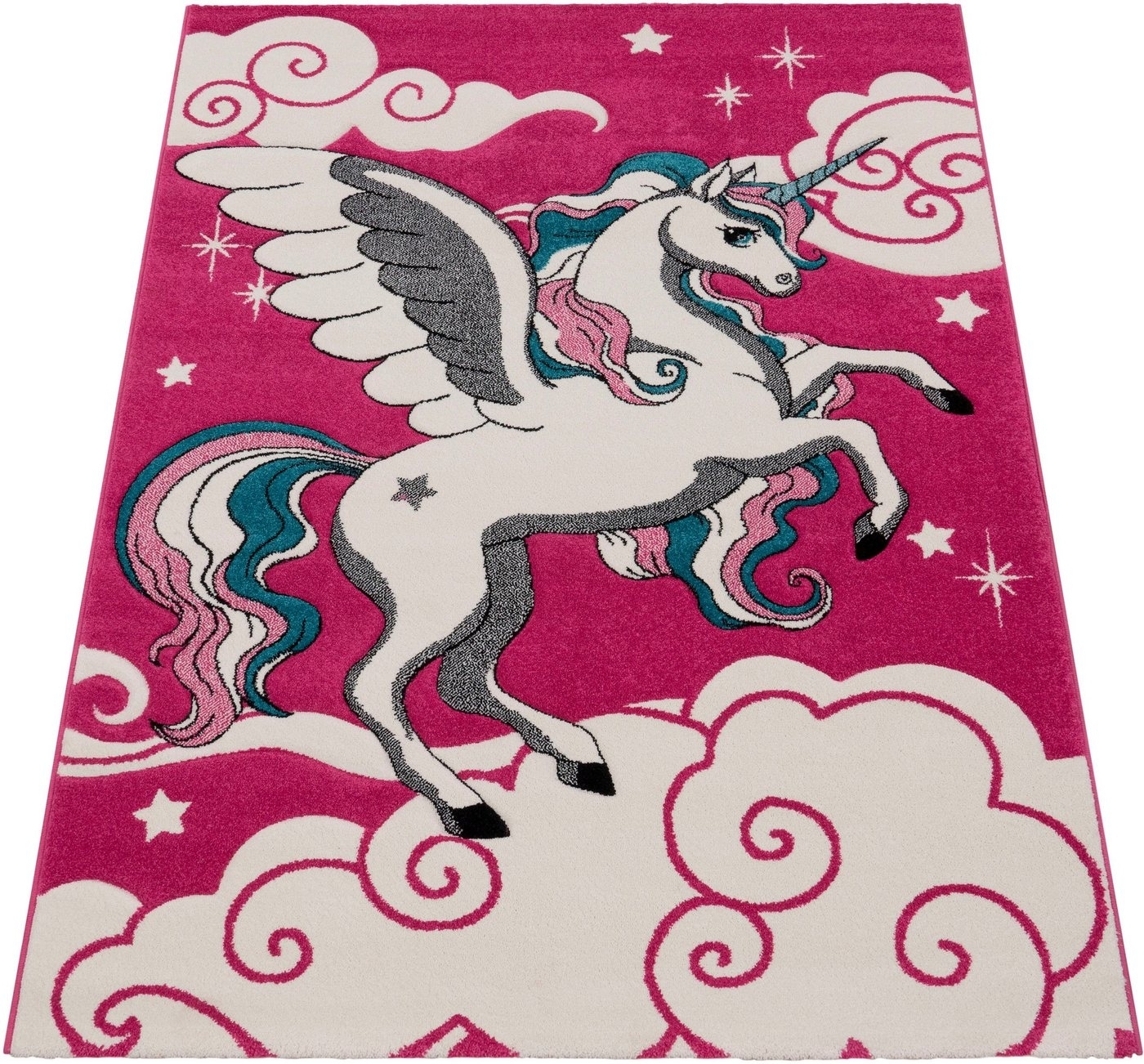 Paco Home Kinderteppich Diamond 640rechteckig, Höhe: 16 mm, 3D-Design, Motiv Einhorn & Sterne, Kinderzimmer