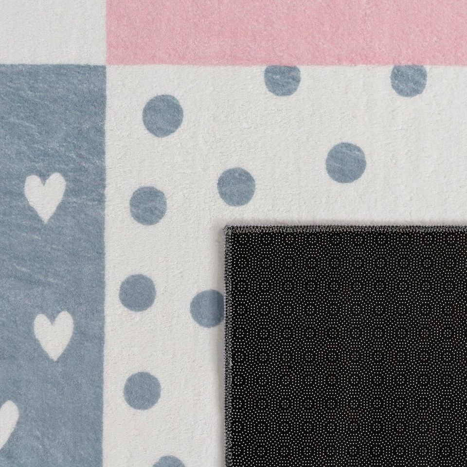 in Kinderteppiche: KinderteppichePaco Home Teppich Kinderzimmer Kinderteppich Spielteppich Kurzflor rutschfest Krone Herzen Punkte Sonne Regenbogen BuchstabenGrösse:200x280 cm, Farbe: Creme Rosa Grau