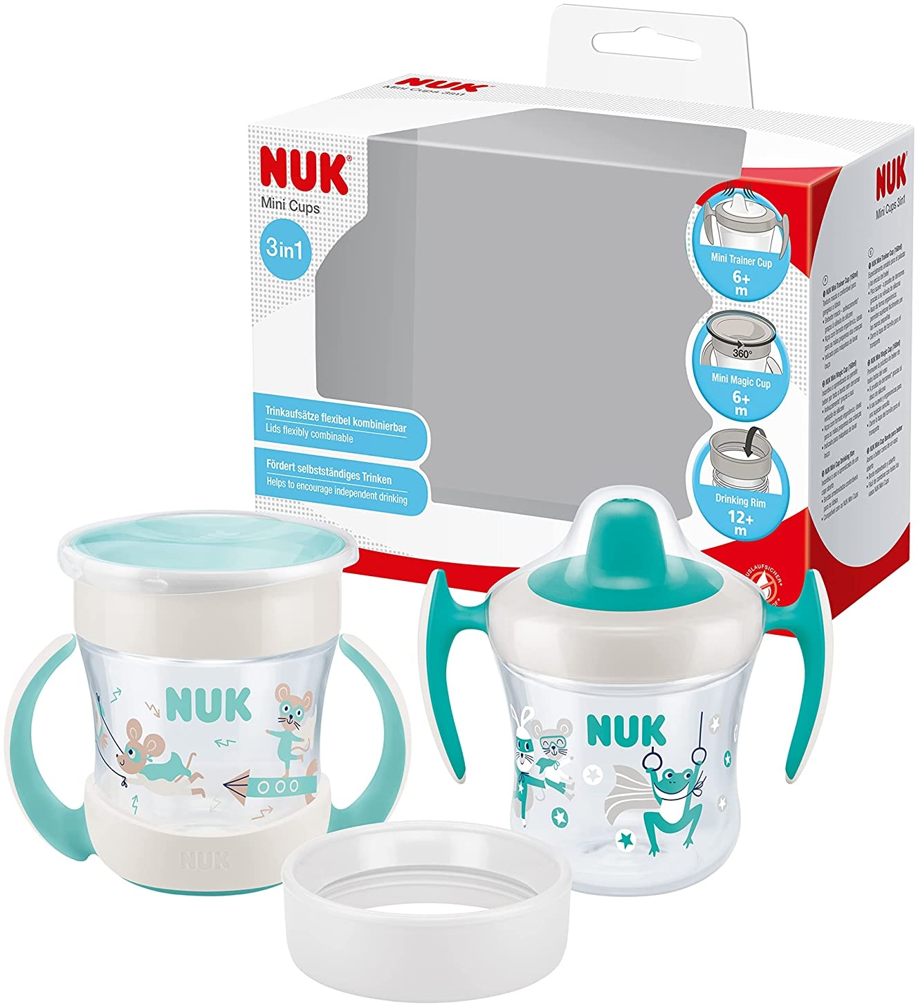 | Name | NUK Mini Cups 3-in-1-Trinklernbecherset Mini Magic Cup und Trainer Cup Auslaufsicherer 360°-Trinkrand ab 6 Monaten Praktische Griffe BPA-frei 160 ml 2 Stück |