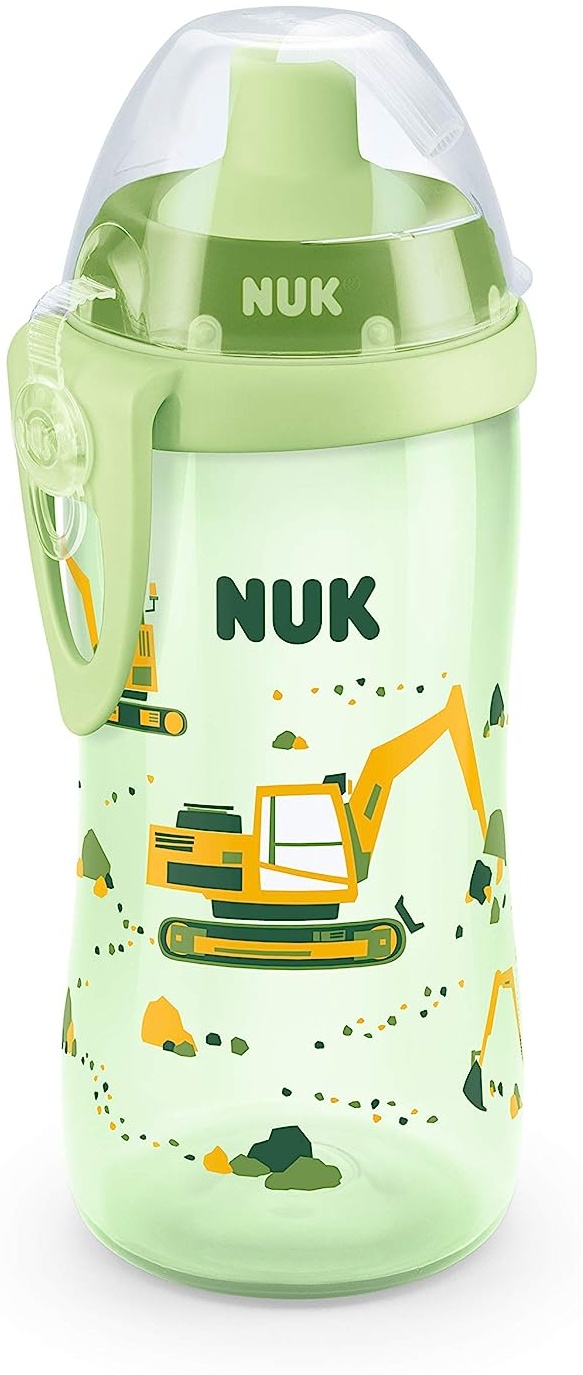 | Name | NUK Flexi Cup Trinklernflasche mit Trinkhalm, 300ml, auslauf- und bruchsicher, BPA-frei, 12+ Monate, BPA-frei, Bagger (grün) |