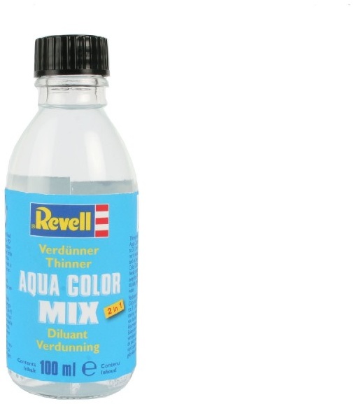 Revell - Aqua Color Mix, 100ml Verdünner und Trocknungsverzögerer in einem!!!Grundsätzlich können die Revell Aqua Color Farben mit Wasser verdünnt werden, um sie spritzfähig zu machen. Die Verdünnung mit Aqua Color Mix hat jedoch zwei Vorteile:Zum einen verzögert sich die Farbtrocknung: dies verhindert ein zu schnelles Antrocknen der Farbe in der Spritzpistole und auf dem Untergrund. Zum anderen optimiert dieser Verdünner auch die Spritzergebnisse auf dem Modell. Gerade bei der Verwendung von matten und seidenmatten Farbtönenreduziert Aqua Color Mix die unerwünschte "Kantenflucht" beim Farbauftrag. Empfohlenes Mischverhältnis: 3-4 Teile Farbe zu 1 Teil Aqua Color Mix. Da das Mischverhältnis stark abhängig ist von der verwendeten Spritzpistole und dem Arbeitsdruck des Kompressors, bitte zunächst lieber weniger verdünnen und die Farbe testen. "Spuckt" die Spritzpistole oder trocknet die Farbe auf dem Modell zu schnell an (raue Oberfläche), verdünnt man einfach ein wenig mehr. Warnhinweis: Achtung! Nicht für Kinder unter 36 Monaten geeignet Achtung! Zusätzliche Warnhinweise/Fähigkeiten (siehe Beschreibung)Achtung! Enthält verschluckbare Kleinteile. Erstickungsgefahr. Achtung! Enthält gefährliche Stoffe und Gemische (siehe Beschreibung) Bei Sortimenten und Großpackungen gilt der angegebene Preis pro Stück. Eine Auswahl ist nur bedingt möglich!