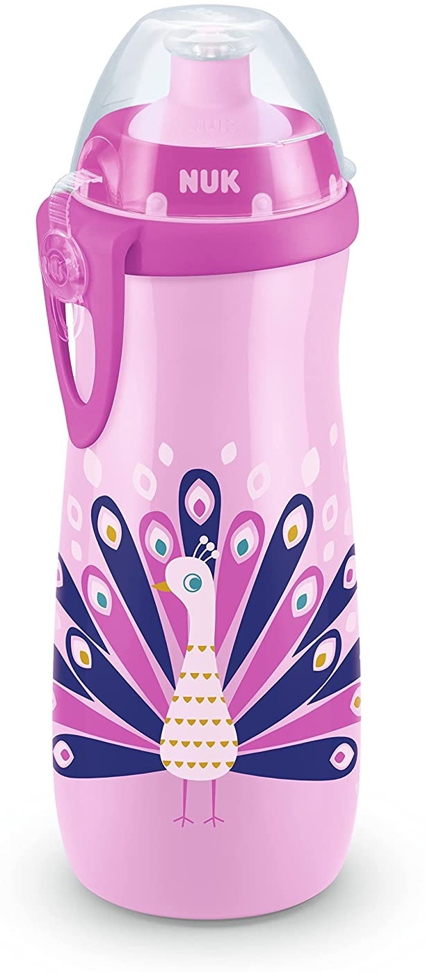 | Name | NUK Sports Cup Kinder Trinkflasche mit Chamäleon-Effekt | 24+ Monate | mit Farbwechsel | auslaufsichere Push-Pull-Trinktülle | Clip & Schutzkappe | BPA-frei | 450 ml | Pfau (lila) |