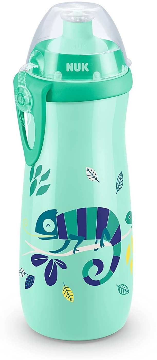 | Name | NUK Sports Cup Kinder Trinkflasche mit Chamäleon-Effekt | 24+ Monate | mit Farbwechsel | auslaufsichere Push-Pull-Trinktülle | Clip & Schutzkappe | BPA-frei | 450 ml | Chamäleon (grün) |