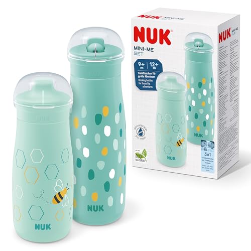 in KindertrinkflaschenNUK Mini-Me Cup Set für Kleinkinder | Sip & Flip-Aufsätze | Auslaufsicherebeißfeste Tülle & Trinkhalm | Bruchsicher | Mint Dots & Bee