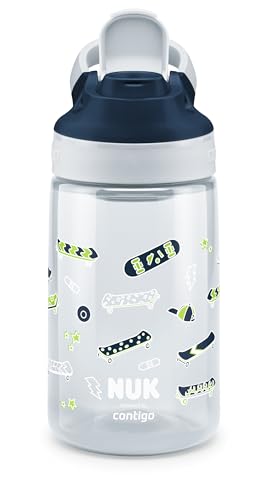 in KindertrinkflaschenNUK By Contigo Easy Sip CupTrinkflasche für Kinder ab 4 Jahren, auslaufsicher, BPA-frei, spülmaschinenfest, 420 ml, Skater Design