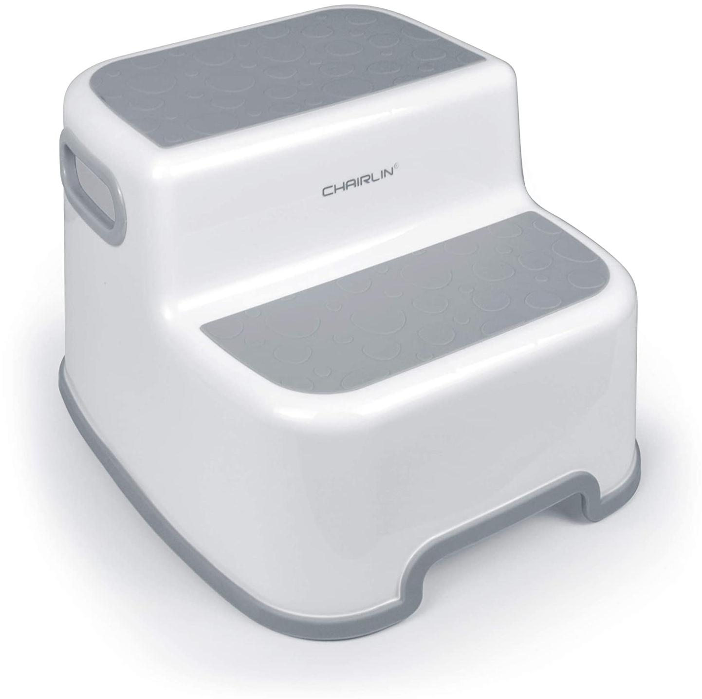 Tritthocker für Kinder – Chairlin Zweistufiger Tritt-Schemel KinderschemelHocker für Kinder, Töpfchen Baby Trittschemel, Kleinkind Tritthocker, Anti-Rutsch (grau)