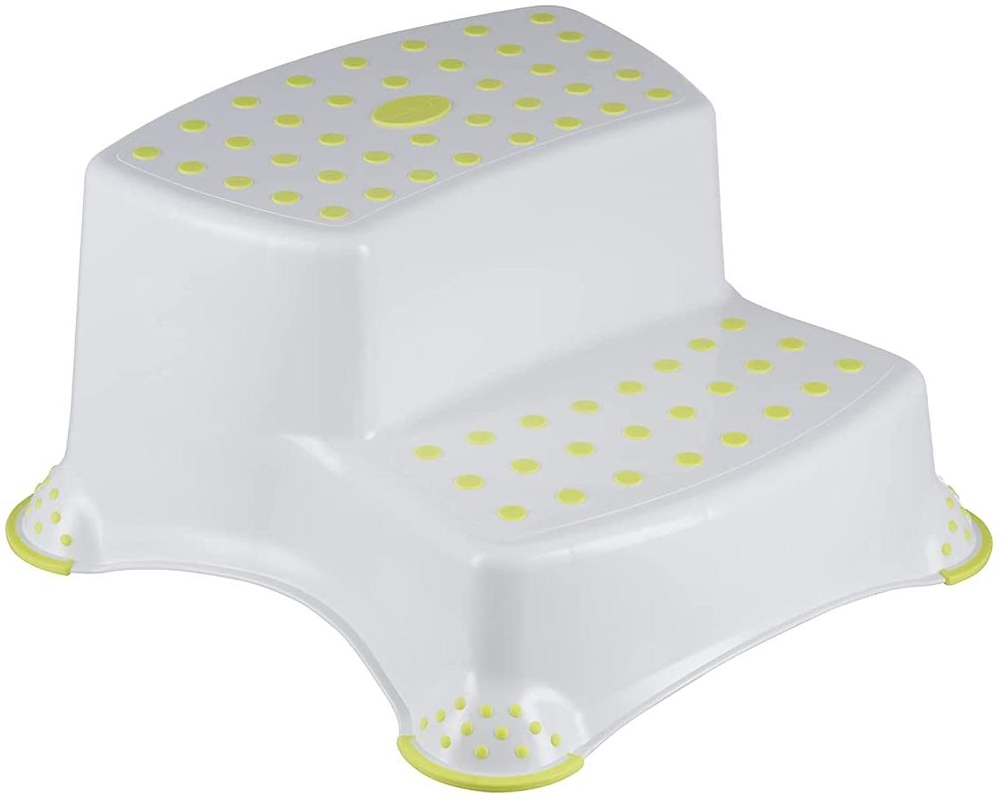 DOPPELTRITTHOCKER – sehr praktisch für das Kind zum Händewaschen: 2 Stufen helfen dem Kind, das Waschbecken zu erreichen LEICHT ZU REINIGEN – für einen hygienischen Gebrauch mit einem Schwamm von Hand abwaschbar SICHER UND STABIL – rutschfeste Pads für zusätzliche Stabilität MOBIL – dank seines geringen Gewichts einfach zu transportieren 2 VERFÜGBARE HÖHEN – der Doppeltritthocker bietet 2 verschiedene Höhen