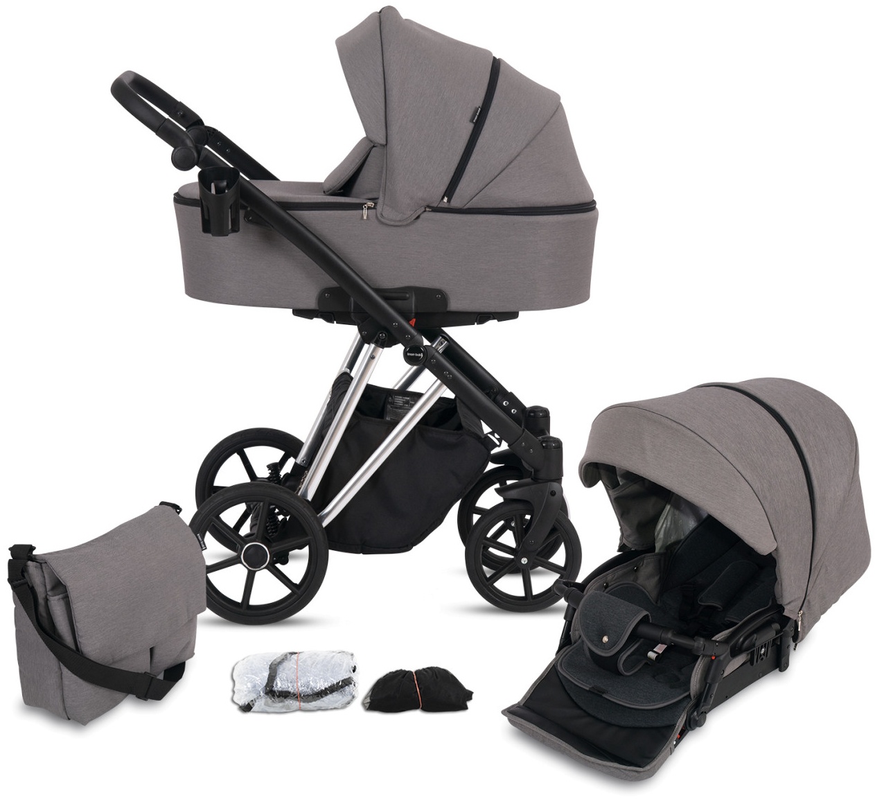 in Kinderwagen 2 in 1Knorr Baby Kombikinderwagen 2in1 'LUZON' Silver Edition 2020 in Taupe inkl. Babywanne, Sportsitz, Wickeltasche, Regenschutz
