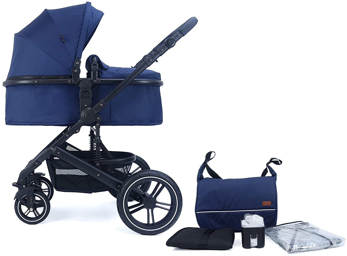 Der Pixini Kombi-Kinderwagen NEYLA verbindet modernes Design mit Komfort. Mit der großen Stoffwanne kann der Kinderwagen bereits ab Geburt des Baby verwendet werden und ist mit dem stylischen Sportwagensitz bis ins Kleinkindalter nutzbar. Dank der guten Federung und den großen Gummirädern sind Ausflüge in Wald oder Stadt komfortabel und mühelos möglich. Die Vorderräder sind 360° schwenkbar und lassen sich natürlich auch feststellen. Der Knickschieber ist mehrfach höhenverstellbar und für extra Komfort mit Kunstleder bezogen. Mit dem passenden Babyschalen Adapter (separat erhältlich - Artikel-Nr. ACC-MCA-530) kann der Kinderwagen bei Bedarf zum praktischen Travelsystem umgewandelt werden. Merkmale: · Kombi-Kinderwagen NEYLA · inklusive Stoffwanne und Sitz · leichter gefederter Rahmen · mit großen Gummirädern hinten · schwenk- und feststellbare Vorderräder · Komfort-Feststellbremse · Mehrfach verstellbare Sitz/Liege Position · Umsetzbare Sitzeinheit mit Klicksystem · 9-fach höhenverstellbarer Knick-Schieber · Kunstlederhandgriff · 5-Punkt-Sicherheitsgurt · Schutzbügel beidseitig zu öffnen · großes Sonnendach mit Sonnensegel · Kompaktes Faltmaß · großer Einkaufskorb · geeignet für Kinder ab Geburt bis ca. 24 Monate · Kinderwagen hergestellt nach EU-Norm EN 1888-1:2018 Enthaltenes Zubehör: · Regenverdeck · Becherhalter · Mückennetz · Wickeltasche · faltbare Wickelauflage Technische Daten: · Gewicht: ca. 10,2 kg · Maße aufgestellt ca. L 95 x B 60 x H 114 cm · Maße Gestell+Sitz zusammengelegt ca. L 85 x B 60 x H 31 cm · Schieberhöhe (niedrigste-höchste): 80 - 112 cm · Räder: vorne 17cm, hinten 30cm