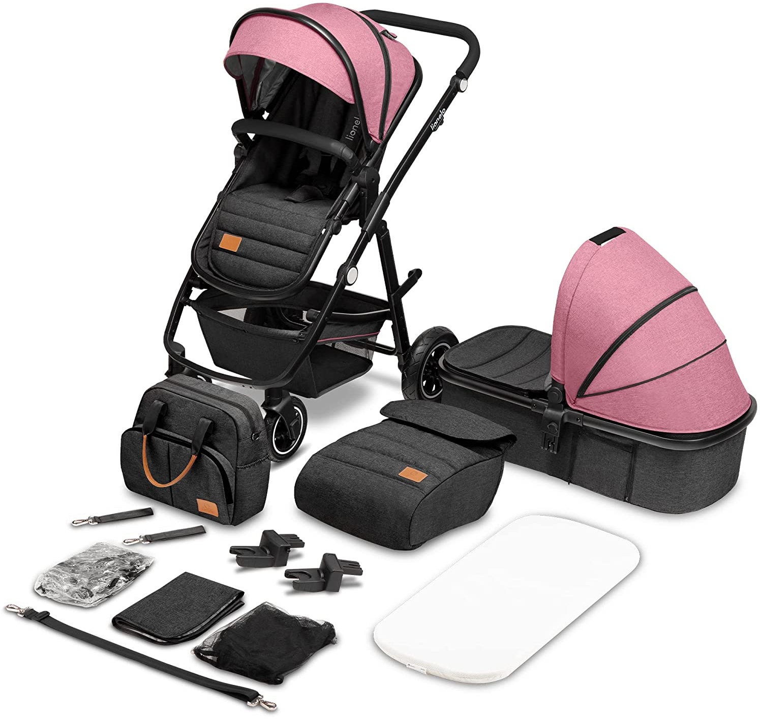 | Name | LIONELO Amber Kinderwagen 2 in 1 Kombikinderwagen, Kinderwagen Set mit sportlichen Sitz und fester Babywanne, Tasche, Moskitonetz, Abdeckung Regenblatt (Rosa) |