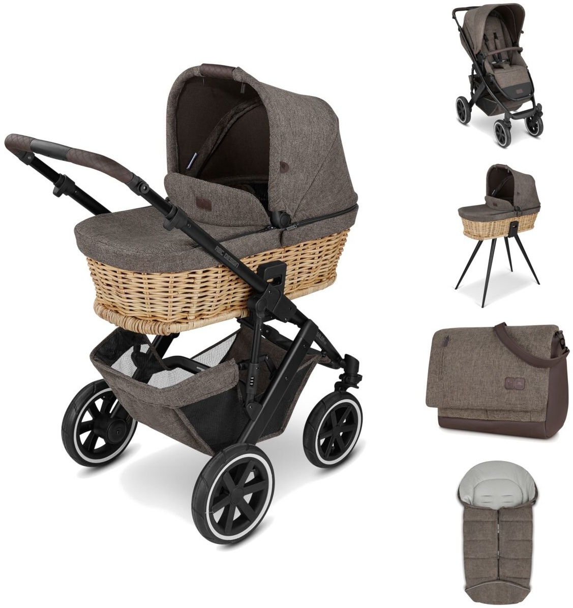 ABC Design 3 in 1 Kinderwagen Salsa 4 Air Home Set Kombikinderwagen für Neugeborene & Babys bis 22kg Inkl. Sportsitz, Tragewanne, Winterfußsack, Wickeltasche & Untergestell Radfederung & Luftreifen Der Eyecatcher der besonderen Art: Bei dem Salsa 4 Air Home Set im Design Braid liegt das Hauptaugenmerk auf der geflochtenen Korbwanne im Retro-Style. Hergestellt aus heller Korbweide schmeichelt sie dem Design mit ihrer Natürlichkeit. Neu ist das Babywannen-Untergestell mit Stubenwagen-Charakter. So kannst Du Dein Kind in der Babywanne neben Dein Bett oder ins Wohnzimmer stellen und bist immer in seiner Nähe. Dieser Kinderwagen passt sich durch maximale Flexibilität und Komfort an deine Bedürfnisse an. Der Schieber lässt sich mit einem Handgriff individuell auf jedes Elternteil einrichten. Durch einen optionalen Adapter kannst Du Deinen Autokindersitz unkompliziert auf den Kinderwagen befestigen und so ein cleveres Travelsystem verwenden. Mit dem ABC Design Universal Fix Befestigungspunkten finden Wickeltasche, Becherhalter oder Licht mit einem Klick ihren Platz. Die mitgelieferte Babywanne bietet höchsten Komfort für Dein Baby. Damit es deinem Lieblings nicht zu warm wird, sorgen zwei individuell nutzbare Belüftungsfenster für eine optimale Luftzirkulation. Zudem hast Du Deinen Schatz so immer im Blick und Dein Baby kann mit großen Kinderaugen die Welt entdecken. Die weiche ergonomische Overnight Matratze ist am Kopfende keilförmig gestaltet, sodass Babys Köpfchen stets hochgelagert ist. Damit der Kopf mit der empfindliche Babyhaut nicht direkt am Belüftungsfenster liegt, hat die Matratze noch einen extraweichen und erhöhten Schutzrand. Integrierte Luftlöcher im Schaumstoff der Matratze gewährleisten eine optimale Belüftung. So kann Dein Liebling auch über längere Zeit ruhig schlafen. Besonderen Komfort für Eltern bietet die neue Memory-Funktion der Babywannen-Halterung. Diese Halterungen entriegelst Du nacheinander und hast immer eine Hand frei, um den Tragegriff festzuhalten. So nimmst Du die Wanne noch bequemer und sicherer vom Gestell Deines Kinderwagens. Auch für einen Ausflug mit dem Auto ist die Babywanne hervorragend ausgerüstet. Die Wanne lässt sich kinderleicht falten und danach platzsparend im Kofferraum unterbringen. Der Sportsitz kann in eine Liegeposition gebracht werden, bei der Dein Kind wirklich flach liegt und sich die Beine nicht mehr in einer 90° Position befinden - dies ist besonders für Kleinkinder angenehm, die gerne auf der Seite oder dem Bauch schlafen. Die Fußstütze ist auch höhenverstellbar, um noch mehr Komfort zu garantieren. Egal ob auf Gehwegen in der Stadt oder abseits der normalen Straßen - der Kinderwagen Salsa 4 Air überzeugt auf jedem Untergrund. Die praktischen Schwenkräder ermöglichen schnelles und laufruhiges Wenden. Hochwertige Kugellager, die integrierte Federung und die großen Lufträder bieten maximalen Komfort und Laufruhe auch bei den größten Abenteuern abseits der Piste. Der Kinderwagen überrascht mit einem sehr kompakten Faltmaß und lässt sich auch mit Sportwagenaufsatz kinderleicht zusammenklappen, was diesen zum perfekten Begleiter für unterwegs macht. Die Feststellbremse und das 5-Punkt-Gurtsystem zusammen mit den abnehmbaren Reifen & der Transportsicherung bieten Sicherheit und praktischen Komfort.