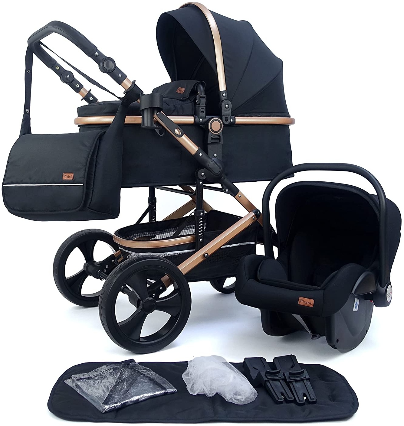 in Kinderwagen 3 in 1Pixini Kinderwagen Kalani 3in1 oxford schwarz / gold (inkl. Autositz, Regenplane, Wickeltasche,. )