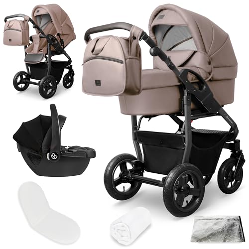 in Kinderwagen 3 in 1Bergsteiger Capri Kombikinderwagen 3-in-1 Babywanne, Sportsitz & i-Size Babyschale, Luftreifen, Federung, höhenverstellbarer Griff, faltbar, Zubehör
