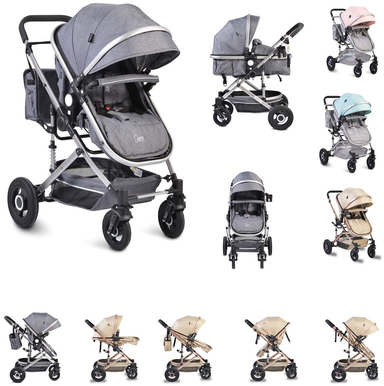 in Kinderwagen 3 in 1Moni Kinderwagen Ciara Tragetasche Sportsitz Wickeltasche faltbar Sitz umkehrbar grau
