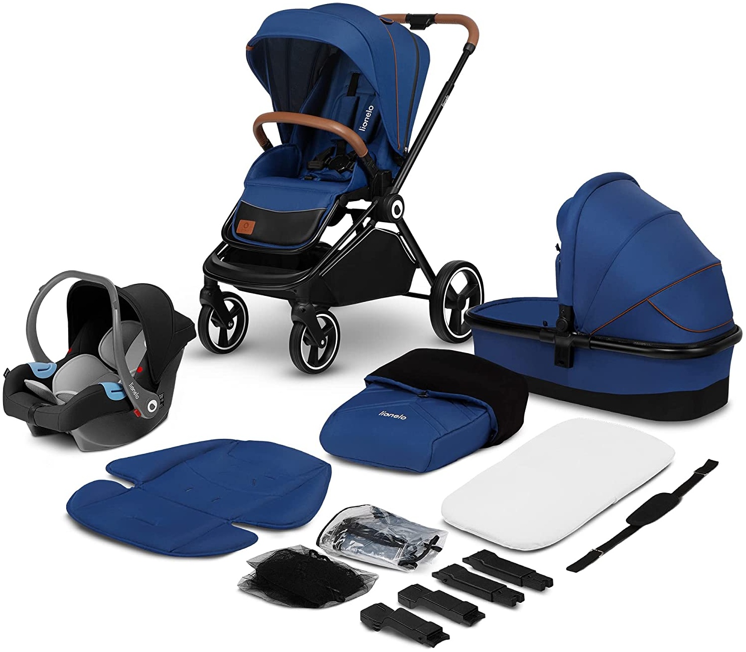 | Name | LIONELO Mika 3in1 Set Kinderwagen, Babywanne, Babyschale. Im Set Moskitonetz, Fußabdeckung, Regenschutz. Wartungsfreie Gummiräder. Leichte Konstruktion (BLUE NAVY) |