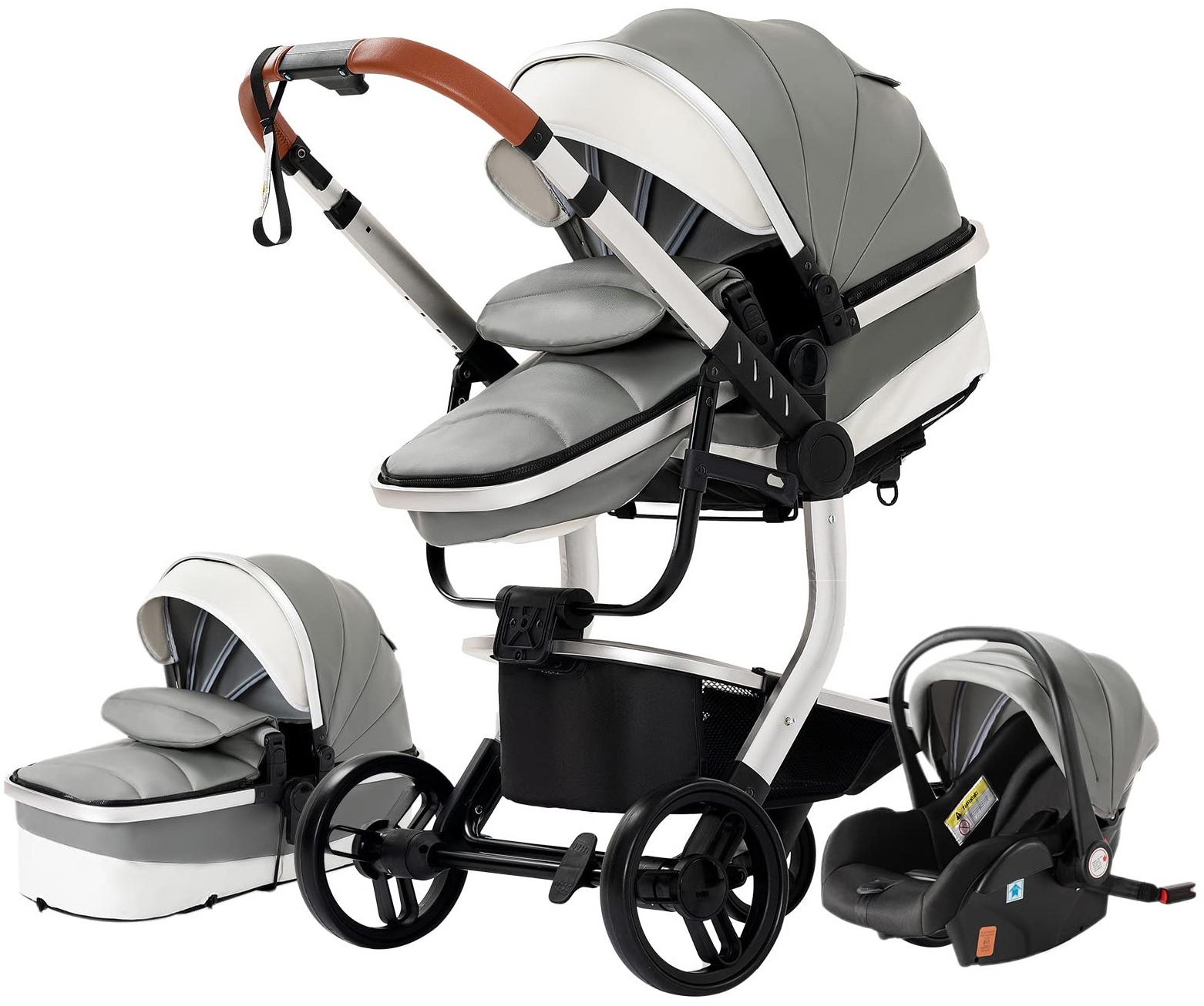 【Multifunktional & 3 in 1 Kinderwagen】 Ein Kinderwagen kann durch einfache Transformationen dreifache Rollen spielen: Schlafkorb, Sitz und Babywanne. 【Drehbares Design & bionisches Eierschalen-Sitzdesign】 Praktisch mit drehbarem Design und sorgen Sie mit dem bionischen Eierschalen-Sitzdesign für das Wachstum Ihrer Babys. 【Bidirektionale Schubmodi und zwei Cover-Modi】 Das Design der bidirektionalen Schubmodi lässt Babys nach Belieben nach außen und innen schauen. Zwei Abdeckungsmodi sind der Atmungsmodus und der Sonnenschutzmodus. 【Engineering Mechanics Design & SUV Shockproof Design】 Verbessern Sie die Tragfähigkeit und Stoßdämpfung mit dem Dreiecksrahmen erheblich. Schützen Sie Babys effektiv vor Schaden und Gefahr. Der Kinderwagen kann in allen Straßensituationen mit stoßfestem SUV-Design verwendet werden: Vorderradfederdämpfer und Hinterradfederdämpfer. Der Kinderwagen kann mit dem ausgestatteten Bremsknopf sofort gestoppt werden. 【PU-Leder & Aluminiumlegierung】 Wasserdicht und Antifouling mit umweltfreundlichem PU-Leder. Außerdem lässt es sich leicht ausspülen. Leicht und langlebig genug mit Aluminiumlegierung.