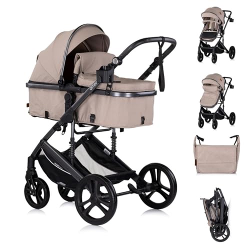 in Kinderwagen 3 in 1Chipolino Kinderwagen Amore 2 in 1 Tragetasche für Neugeborene, verstellbare Sitzeinheit, Getränkehalter, hellbraun