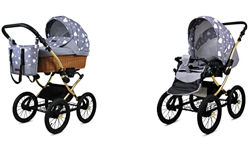 BabyLux ALU 2in1 Kinderwagen Silver Hearts Gold Frame - Multifunktionaler KinderwagenElegant designt, Sicherheitsgeprüft, Mit praktischem Zubehör
