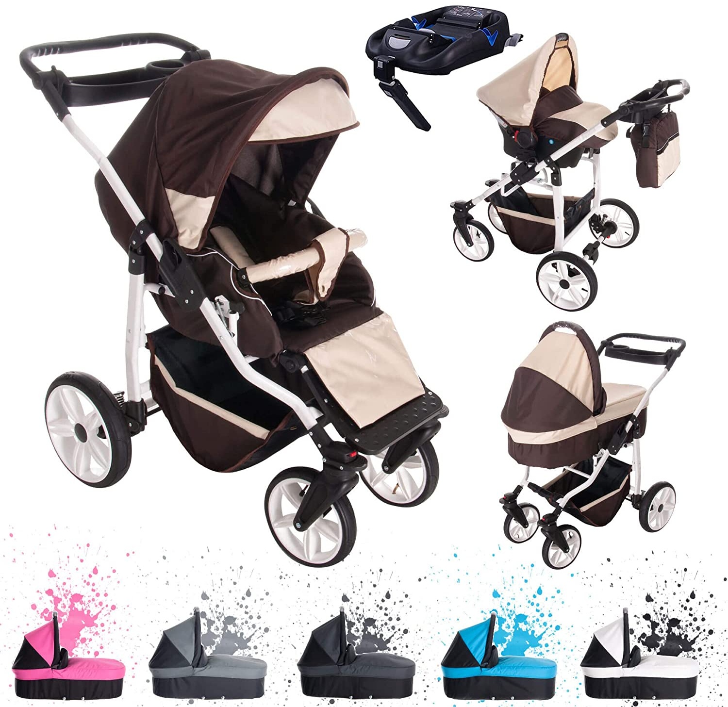 in Kinderwagen 4+ in 1Bebebi Zürich | ISOFIX Basis & Autositz | 4 in 1 Kombi Kinderwagen | Farbe: Charmey Luft