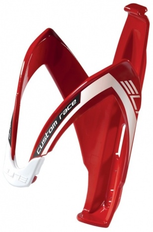 - Der Elite Flaschenhalter Custom Race ist in einer auffälligen rot/weißen Glanzfarbe gestaltet