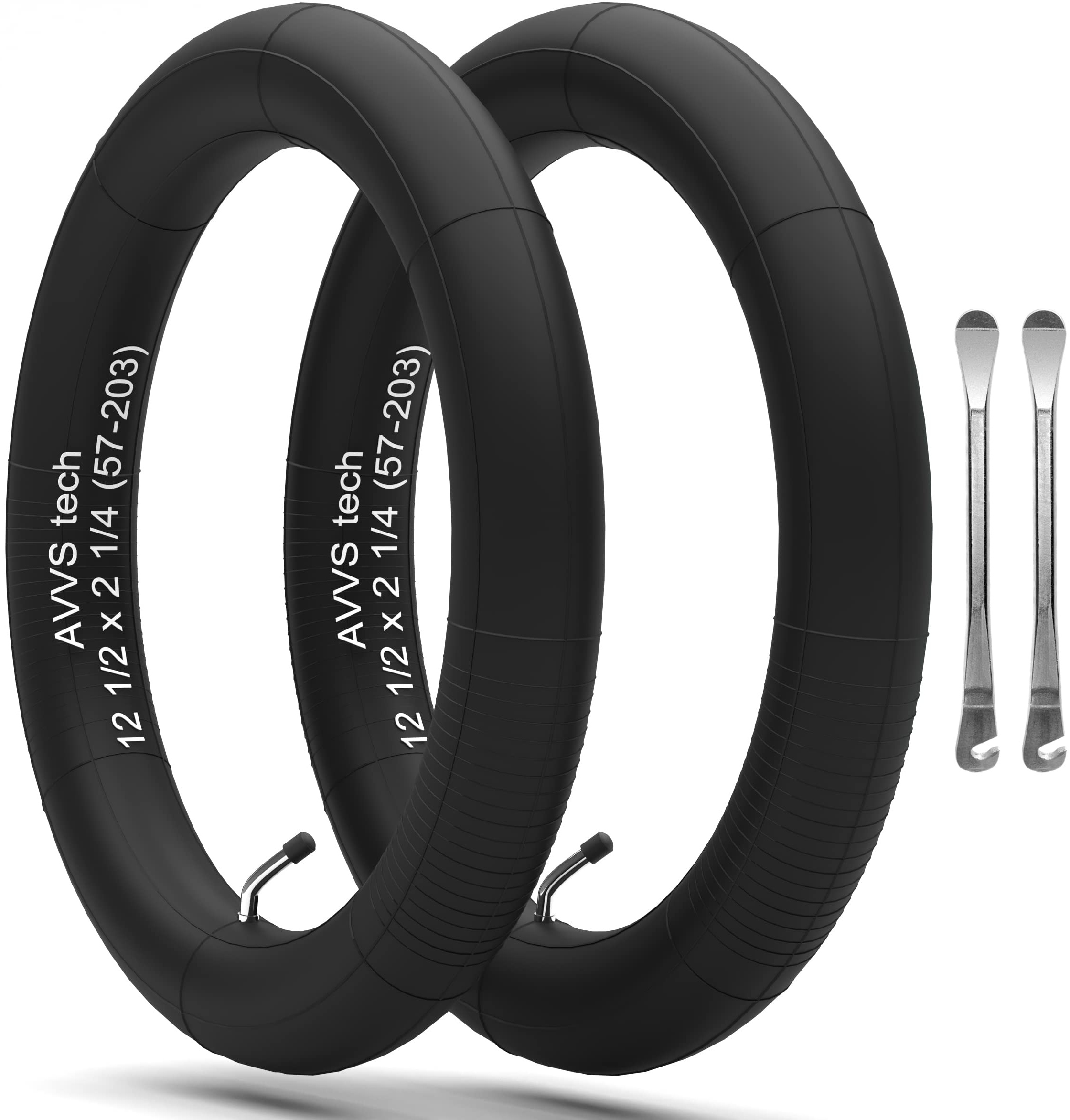AVVS tech - Kinderwagen Schlauch 12 Zoll Mit Winkelventil 45° inkl. Montagehebeln | 2 Stück Packung | Roller Reifen Kinderwagen Dreirad Laufrad Fahrrad Anhänger
