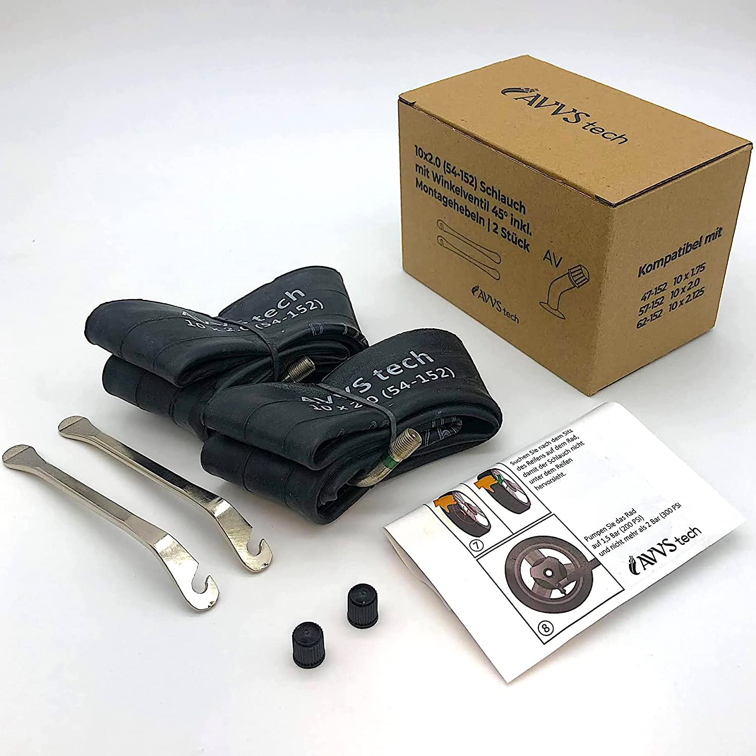 in Kinderwagen Räder10x2 54-152 Schlauch 10 Zoll Kinderwagen Schlauch mit Winkelventil 45° inkl. 2 Monagehebeln | 2 Stück Packung | für Kinderwagen Reifen 10 Zoll 10 x 2 54-152