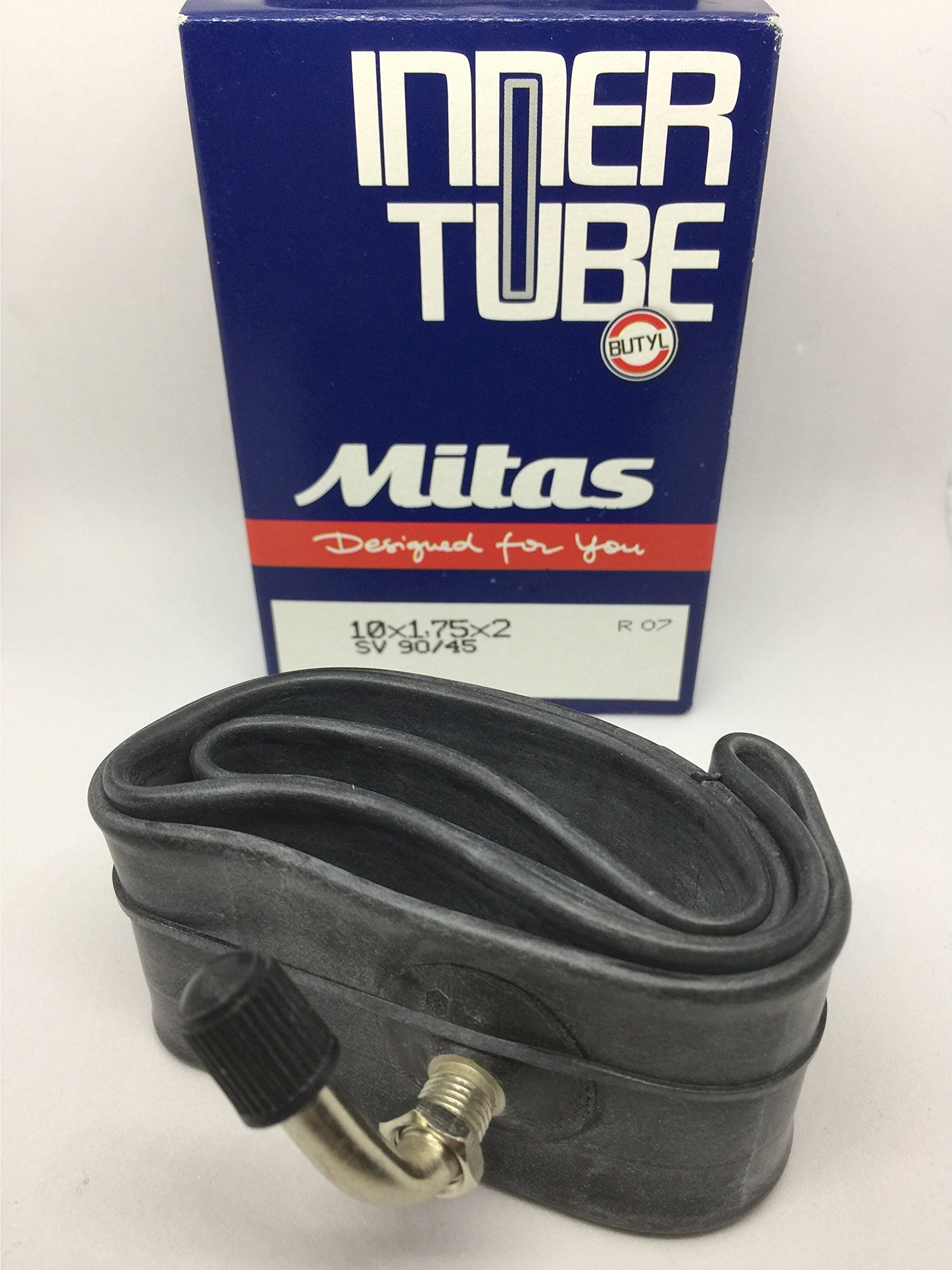 Mitas 1x 10 Zoll Schlauch 90°AV | 10x1. 75x2 | 47-152 abgewinkeltes Auto-/Schrader- Ventil Ersatzschlauch Kinderwagen Buggy Roller