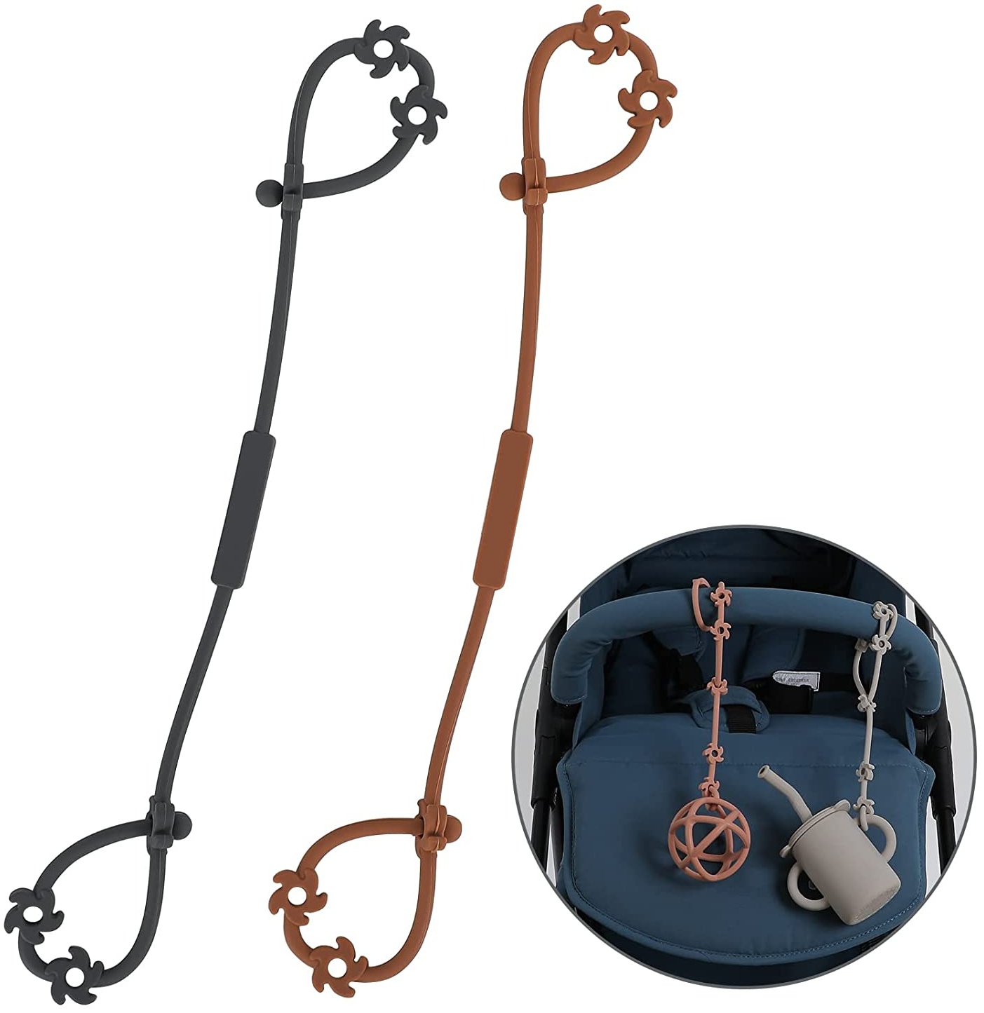 in Kinderwagen ZubehörCup CatcherSpielzeug Sicherheitsgurte Trinkbecher Halteriemen für Kinderwagen Hochstuhl Autositz, aus Lebensmittelqualität Silikon, BPA-frei, 2er-Pack (Clay+Dark Grey)