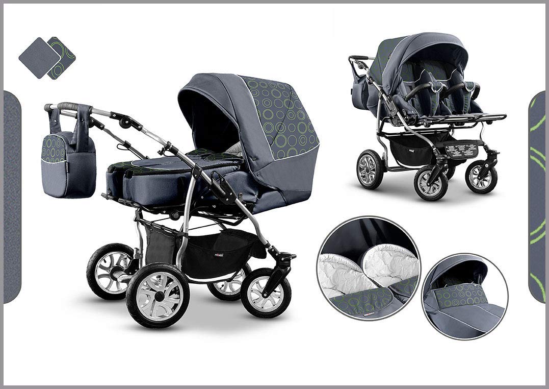 IHR SORGLOSPAKET - Das Kinderwagen-Set DUET ist ein 2 in 1 Multitalent. Kinderwagen inkl. Sportsitzen (ab dem 6. Lebensmonat), 2 x Softtragetaschen, Beindecke, Wickeltasche, Regenfolie und Moskitonetz verwendbar für Kinderwagen und Sportwagen, Verchromte Plastikfelgen. GELÄNDETAUGGLICH UND SICHER: Gleich in welchem Gelände Sie mit der DUET fahren möchten: mit den 360 ° schwenkbaren und feststellbaren Vorderrädern sowie der einstellbaren Federung der Hinterräder bietet die DUET Komfort und Sicherheit. PRODUKTVIDEO: be/o Bg F Zmd E Ve E VARIABEL - Die Wanne / Sportsitz und die Autositz (Adapter notwendig) lassen sich bequem in und entgegen der Fahrtrichtung anbringen = ganz wie Sie und Ihr Kind es mögen. Mit dem "ALL INCLUSIVE" Zubehör erhalten Sie alles für Unterwegs was Sie benötigen: Regenfolie, Moskitonetz und eine großzügige Wickeltasche. EIN BESUCH LOHNT SICH - Besuchen Sie unseren Amazon Shop. Hier finden Sie weitere tolle Kinderwagen - von Sportiv bis Klassisch - und viel Zubehör für den perfekten Ausflug.
