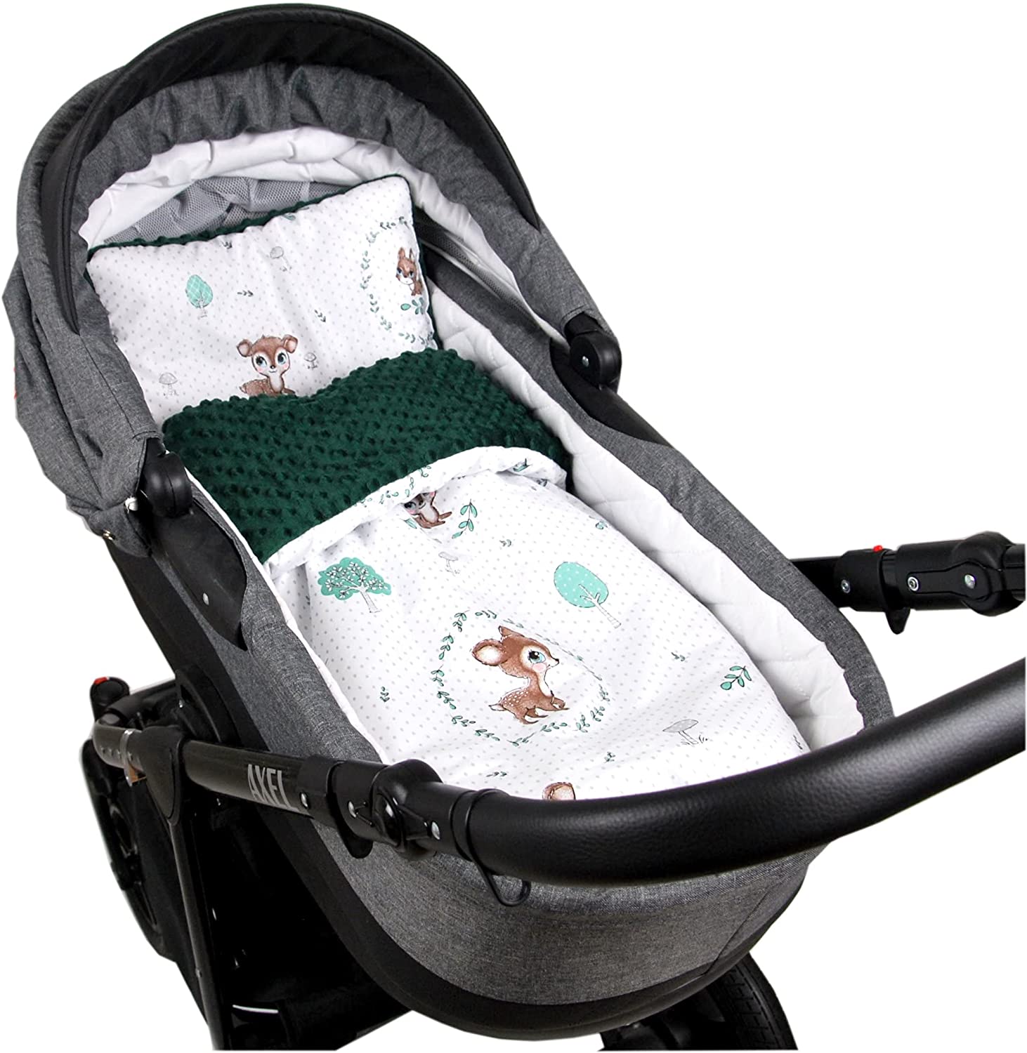 BABYLUX Babydecke MINKY PLÜSCH Kinderwagen 75x60cm MP120A. Wald Reh + Grün
