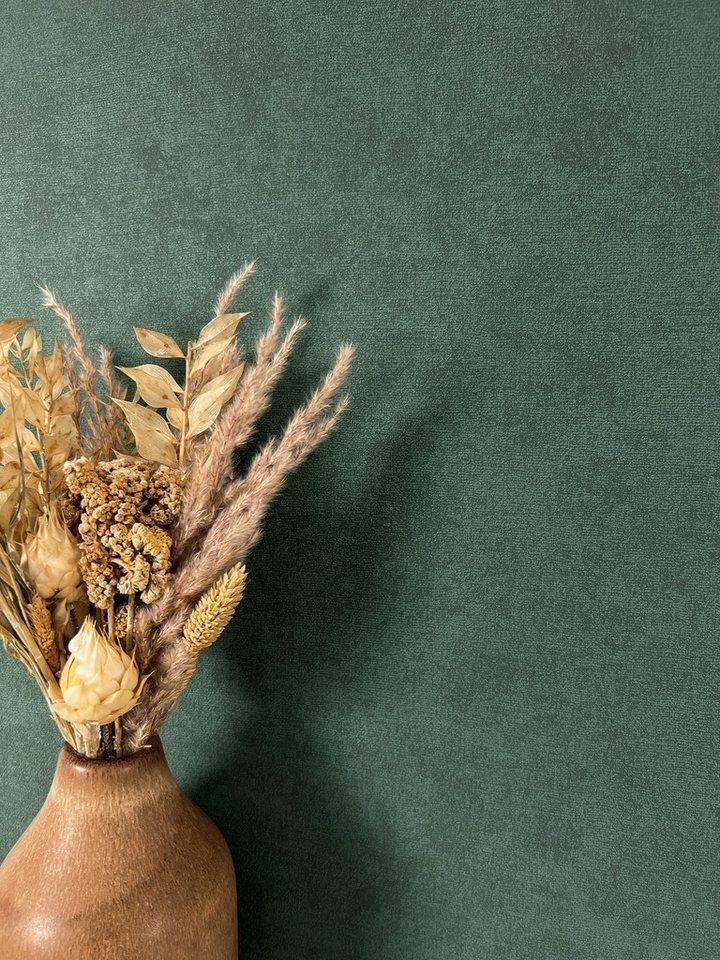 Verleihen Sie Ihren Wänden mit der Newroom Vliestapete in Dunkelgrün einen modernen und stilvollen Look. Diese hochwertige Tapete in Leinen-Optik ist eine kostengünstige Alternative zu echten Wandpaneelen und eignet sich ideal für Schlafzimmer, Wohnzimmer, Küche und Büro. Sie ist lichtbeständig, hochwaschbeständig und lässt sich restlos trocken abziehen. **Highlights** - Modernes Design für vielseitige Einsatzmöglichkeiten - Hochwertiges Material, Made in Germany - Lichtbeständig und hochwaschbeständig - Restlos trocken abziehbar - Gratis Newroom Tapeten Ratgeber für perfekte Anbringung **Produkteigenschaften** - Maße: 10,05 m x 0,53 m - Fläche: 5,33 qm - Rapport: 0/0 cm (ansatzfrei) - Farbe: Grün - Motiv: Unifarbe Struktur Monochrom **Lieferumfang** - 1 x Newroom Vliestapete - 1 x Newroom Tapeten Ratgeber
