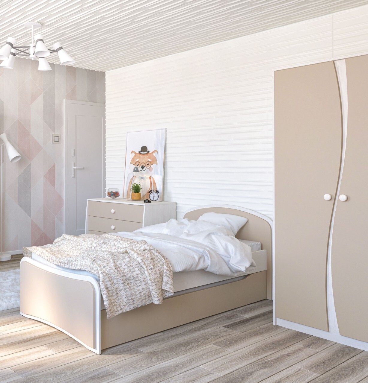 | Set-Bestandteile | 1 Kleiderschrank, 1 Bett, 1 Schubladenkommode |