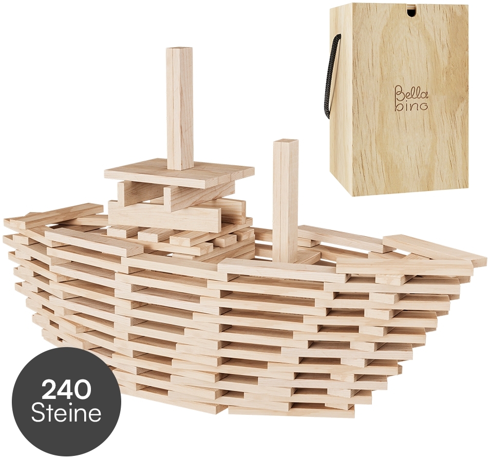 | Name | Bellabino 'Sabino' Holzbausteine zum Bauen & Basteln, Kiefernholz natur, ab 3 Jahren, 240 Stück |
