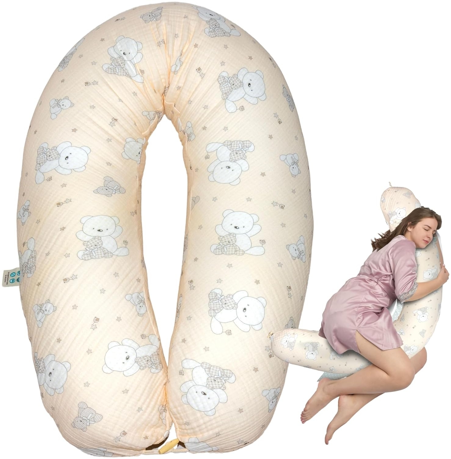 in Kinderzimmersei Design Stillkissen XXL Musselin Bezug 190x30 Stillkissenbezug 100% Bio-Baumwolle Schwangerschaftskissen Seitenschläferkissen Komfortkissen Erwachsene Baby Kissen