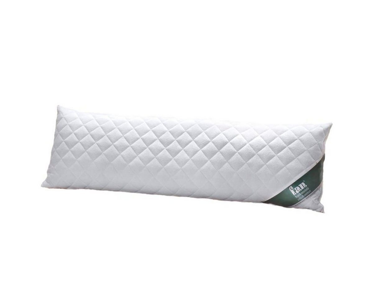 ## f.a.n. Medisan Seitenschläferkissen – Stillkissen, abnehmbarer Bezug, ca. 140 x 40 cm **Vielfältige Einsatzmöglichkeiten** Das Seitenschläferkissen von f.a.n. eignet sich auch sehr gut als Stillkissen. Seitenschläfer werden durch das Kissen in der Hals- und Schulterpartie entlastet. Während der Schwangerschaft ist es angenehm stützend und später als Stillkissen verwendet, kann das Baby bequem liegen und die Mutter wird unterstützt. ## Artikel im Detail: * Seitenschläfer- bzw. Stillkissen * Kissenform ermöglicht entspanntes Liegen * Größe 140x40 cm * Bezugsstoff Doppeljersey uni (100% Polyester), gefüllt mit Faserbällchen (100% Polyester) gesteppt * Füllung: separates Innenkissen (100% Polypropylen), gefüllt mit Faserbällchen (100% Polyester) * Farbe 10 weiß * Für Allergiker geeignet ### Pflege: Bezug waschbar ### Hinweise: Verpackung: In Tragetasche mit Einleger