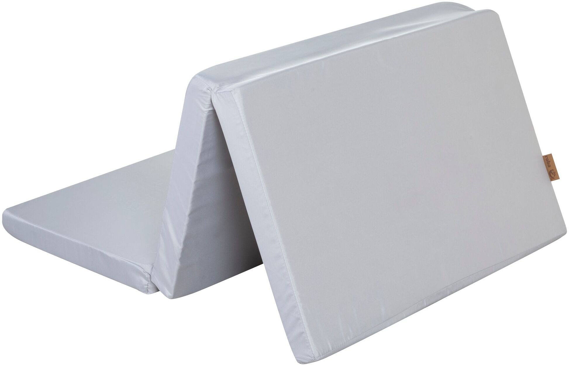Die roba Reisebettmatratze 'roba Style grau' mit den Maßen 60x120 cm bietet optimalen Komfort für Babys und Kleinkinder. Der hochwertige PU-Schaumkern mit einer Höhe von 5,5 cm sorgt für einen erholsamen Schlaf. Der Bezug aus weicher Mikrofaser ist atmungsaktiv und strapazierfähig. Die Matratze lässt sich auf 40x60 cm zusammenfalten und in der mitgelieferten Tragetasche hygienisch transportieren. Alle Materialien sind schadstoffgeprüft und zertifiziert. **Highlights** - Hochwertiger PU-Schaumkern für angenehmen Liegekomfort - Bezug aus weicher, atmungsaktiver Mikrofaser - Kompakt zusammenfaltbar auf 40x60 cm - Mit staubsicherer Tragetasche für hygienischen Transport - Schadstoffgeprüfte und zertifizierte Materialien **Produkteigenschaften** - Maße: 60x120 cm - Höhe: 5,5 cm - Bezug abnehmbar und waschbar bei 30°C - Vielseitig einsetzbar als Sitzhocker oder Spielmatratze **Lieferumfang** - 1 x Reisebettmatratze - 1 x Tragetasche - Ausschluss von optionalem Zubehör