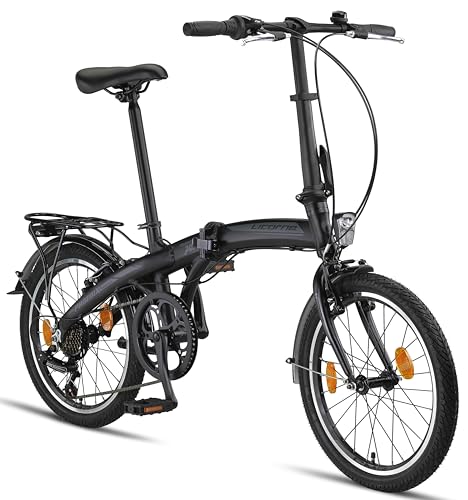 in KlappräderLicorne Bike Phoenix 2D20 Zoll Aluminium-Faltrad-Klapprad Scheibenbremse Discbremse V-Bremse Faltfahrrad Herren-Damen 7 Gang Kettenschaltung Folding City Bike StVZO (Schwarz-Anthrazit)