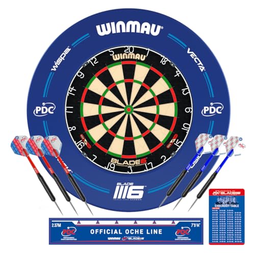 - Es umfasst den Winmau Blade 6 Professional Dartboard und bietet einen Innendurchmesser von 43,6 cm sowie einen Außendurchmesser von 67,5 cm