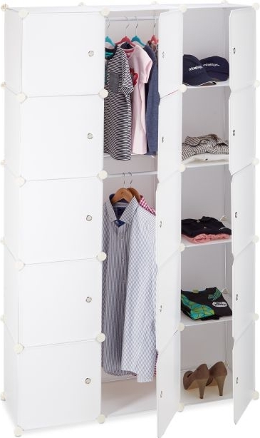 Regalsystem Kleiderschrank mit 11 Fächern für individuellen Stauraum. Das clevere Stecksystem aus robustem Kunststoff und Metall ermöglicht die Schaffung von bis zu 11 Fächern für Kleidung, Bücher und mehr. Inklusive Kleiderstangen für das Aufhängen von Blusen und Jacken. Ideal für verschiedene Räume, bietet dieser Schrank viel Stauraum und kreative Gestaltungsmöglichkeiten. **Highlights** - Cleveres Stecksystem für individuelle Gestaltung - Bis zu 11 Fächer für optimalen Stauraum - Inklusive Kleiderstangen für hängende Kleidung - Robustes Material aus Kunststoff und Metall - Vielseitig einsetzbar in verschiedenen Räumen **Produkteigenschaften** - Maße für 5 Ebenen H x B x T: ca. 181 x 110 x 37 cm - Fach Maße H x B x T: ca. 35 x 35 x 35 cm - Maximale Anzahl Fächer: 11 - Traglast pro Fach: ca. 8 kg - Material: Kunststoff, Metall - Stecksystem aus 116 Teilen - 2 Kleiderstangen - 15 Türen - 49 Wände - 50 Verbindungsstücke **Lieferumfang** - 1x Regalsystem Kleiderschrank - 116 Elemente - Inklusive Montageanleitung und Holzhammer - Dekoartikel sind nicht im Lieferumfang enthalten