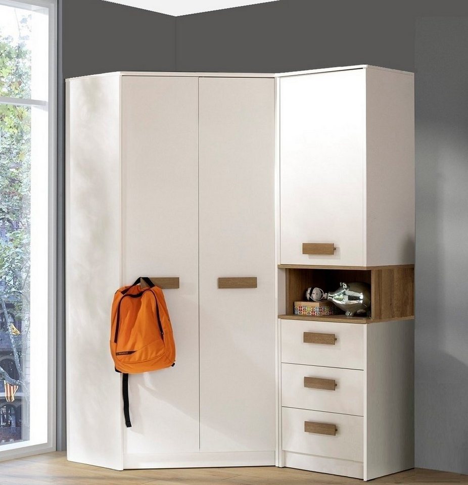 in KleiderschränkeMarmex Möbel Grant 15 Ein modernes Schlafzimmer-SetJugendzimmer-Set, Eckkleiderschrank und Bücherregal, laminierte Spanplatte, weiß+riviera Eiche, 143x195x91 cm