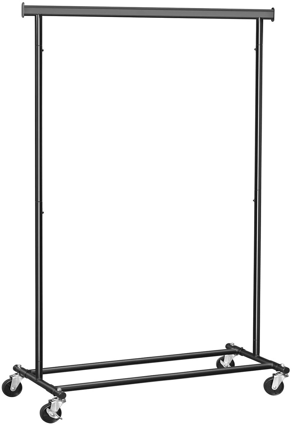 | Name | Songmics Schwerlast-Kleiderständer auf Rollen, bis 90 kg belastbar, mit ausziehbarer Kleiderstange, zusammenklappbares Unterteil, Ablage für Boxen, schwarz |