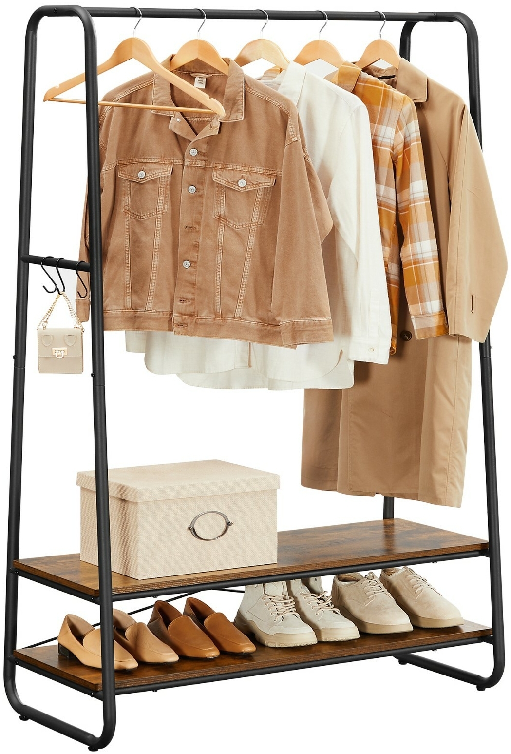 | Name | Vasagle Kleiderständer mit 2 Ablagen und 6 Haken, Stahlgestell Braun/Schwarz, 100 x 45 x 160 cm |