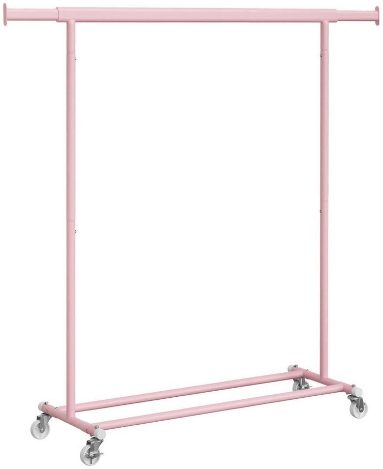 Songmics Kleiderständer auf RollenGarderobenständer, ausziehbare Kleiderstange, bis 90 kg belastbar, einfache Montage, transportabel, pastellrosa