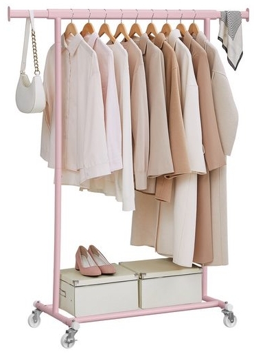 in KleiderständerSongmics Kleiderständer auf RollenGarderobenständer, ausziehbare Kleiderstange, bis 90 kg belastbar, einfache Montage, transportabel, pastellrosa