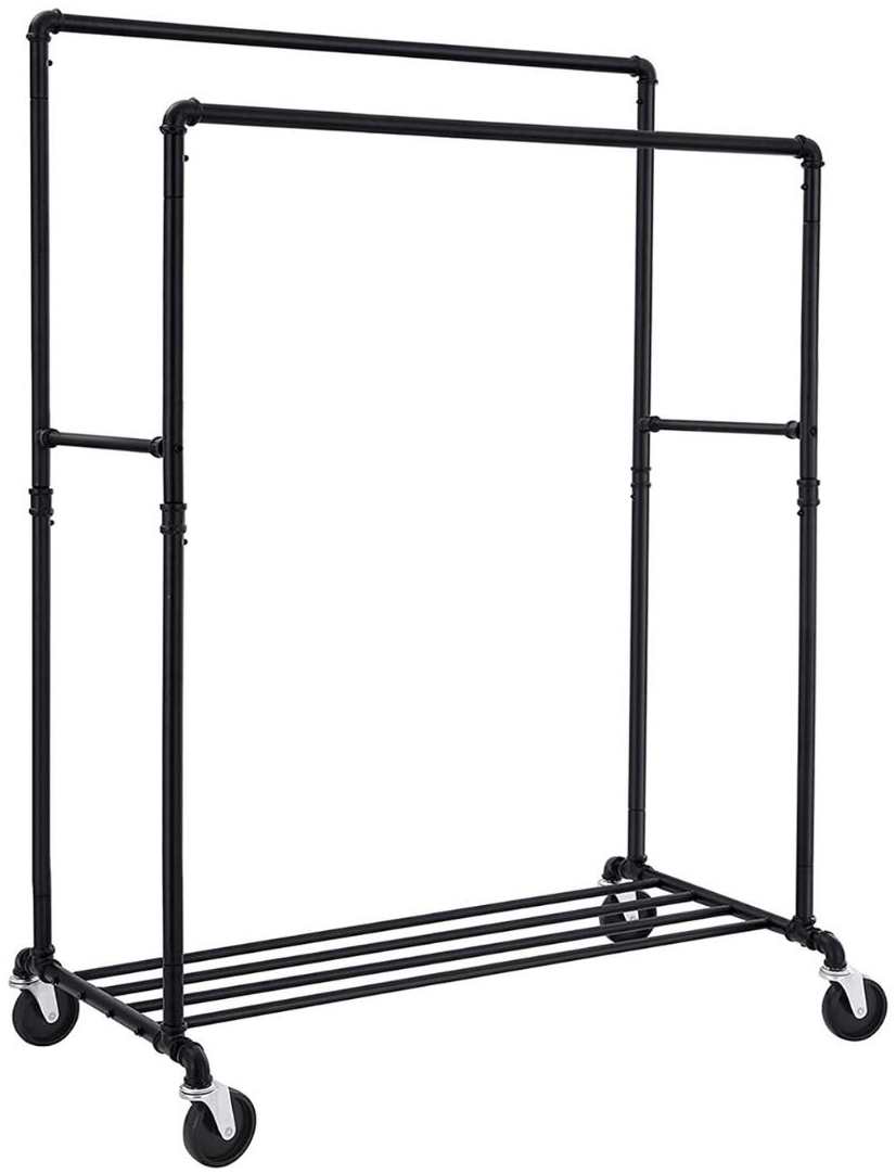| Name | Songmics Kleiderständer auf Rollen, bis 110 kg belastbar, im Industriedesign, mobiler Garderobenständer mit 2 Kleiderstangen und 1 Ablage, Schwerlast, zur Warenpräsentation, schwarz |