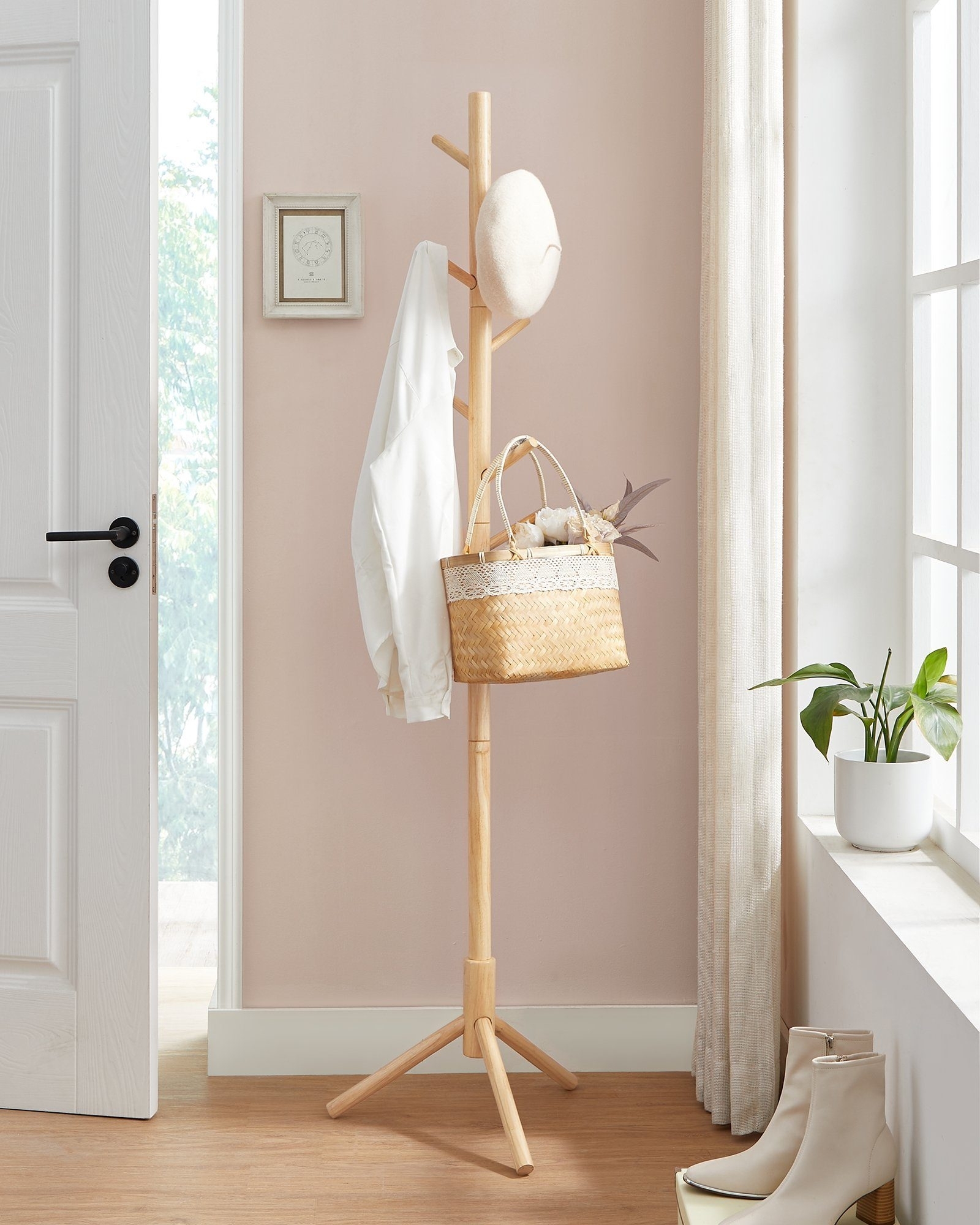 - STABIL WIE EIN BAUM: Kippt Ihr Garderobenständer immer um, wenn Sie eine Jacke daran aufhängen möchten? Ein lästiges Problem, richtig? Probieren Sie diesen Massivholz-Kleiderständer aus! Aus einer 3,8 cm dicken Haltestange und einem dreibeinigen, Ø 47 cm Standfuß gefertigt, besitzt er eine ausgezeichnete Stabilität - KEIN CHAOS, KEIN ÄRGER: Kleidung auf dem Stuhl, Taschen auf dem Boden, Hüte im Schrank – All dies kann an diesen 8 Haken aufgehängt werden. Dank ihrer abgerundeten Enden müssen Sie sich keine Sorgen machen, dass Ihre Kleidung beim Aufhängen Fäden zieht. Jeder Haken ist mit bis zu 5 kg belastbar (der Ständer insgesamt mit bis zu 15 kg) - EIN BISSCHEN ANDERS: Diese Garderobe bietet verschiedene Aufbaumöglichkeiten: Haken im oberen oder unteren Bereich? Ihre Entscheidung! Im Vergleich zu Metall verleiht das Massivholz Ihrem Zimmer zudem eine natürliche Note - SPAREN SIE KOSTBARE ZEIT: Dank der nummerierten Einzelteile und einer verständlichen Anleitung können Sie diese Garderobe innerhalb von 10 Minuten aufbauen. Erledigen Sie die Montage in Rekordzeit und widmen Sie sich dann wieder wichtigeren Dingen - WAS SIE BEKOMMEN: Einen freistehenden Garderobenständer, welcher über einen stabilen Standfuß und 8 flexible Haken mit abgerundeten Enden verfügt. Gönnen Sie sich also diese elegante Garderobe und halten Sie das Chaos in Ihrem Eingangsbereich im Zaum! **Dieser freistehende Garderobenständer fehlt Ihnen noch zu Ihrem Glück** Ein ordentliches Zuhause macht einfach glücklich. Holen Sie sich diese Garderobe von VASAGLE und machen Sie den ersten Schritt zu einem glücklicheren Zuhause. Räumen Sie Kleiderstapel vom Sofa und verwandeln Sie Ihre Wohnung wieder in eine Wohlfühlzone. **Die Highlights dieser Garderobe im Überblick:** - Durch einen dreibeinigen Standfuß gestützt, ist diese Garderobe stabil und kippt nicht um, wenn Sie Ihre Jacke auf einen Haken hängen. Zudem ist sie äußerst robust und langlebig. - 8 Haken mit abgerundeten Enden, an denen Sie Kleidung, Taschen und andere Gegenstände griffbereit sowie gepflegt aufhängen können, stehen Ihnen zur Verfügung. - Die Montage wird Ihnen kein Kopfzerbrechen bereiten: Der Aufbau dieser Garderobe ist ein Kinderspiel! **Produktdetails:** - Farbe: Naturfarben - Material: Kautschukholz - Größe: 47 x 47 x 175 cm (L x B x H) - Länge pro Haken: 12,3 cm - Gewicht: 2,2 kg - Max. statische Belastbarkeit pro Haken: 5 kg - Max. statische Belastbarkeit insgesamt: 15 kg **Lieferumfang:** - 1 x Garderobenständer - 1 x Anleitung (DE, EN, FR, ES, IT) **VASAGLE Hinweise:** - Setzen Sie das Produkt nicht über einen längeren Zeitraum hinweg direkter Sonneneinstrahlung aus.