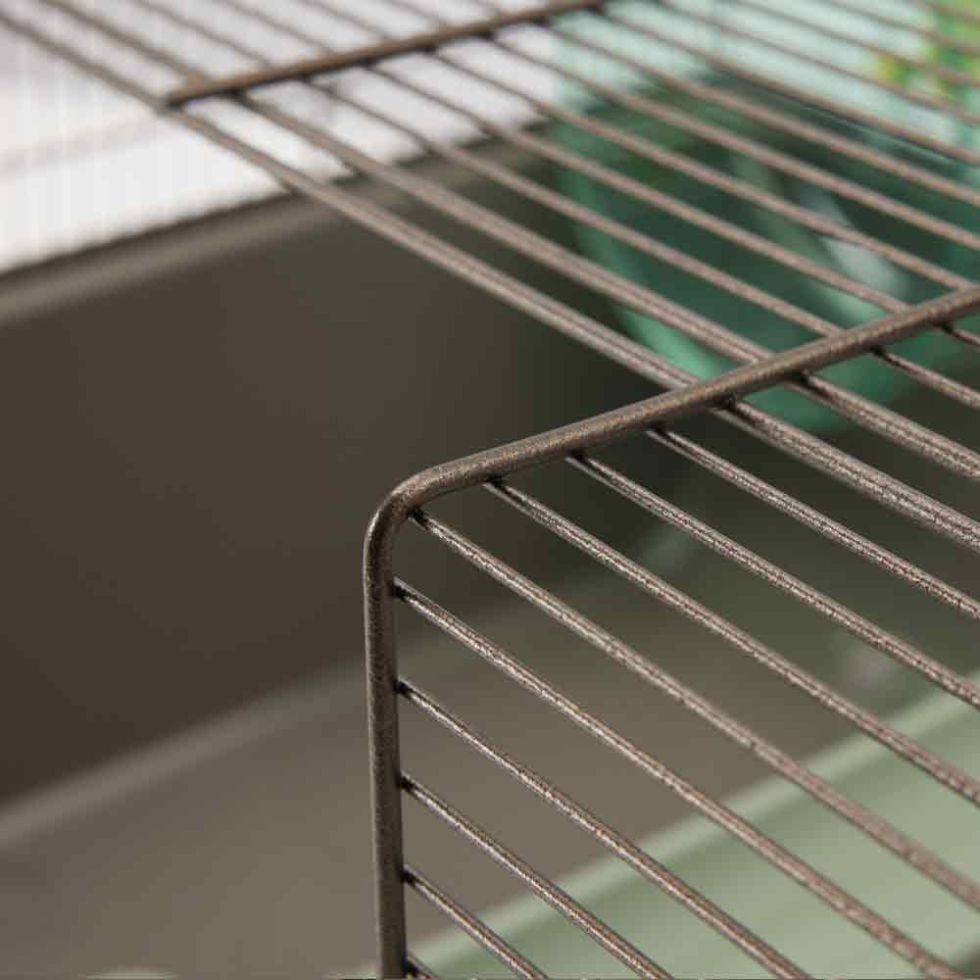 - Der Käfig besticht durch sein braun lackiertes Metallgitter, das ihm einen ansprechenden Retro-Stil verleiht und sich harmonisch in jede Einrichtung einfügt