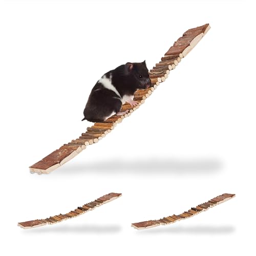 in KleintierspielzeugeRelaxdays Hängebrücke Nager 3er Setbiegsame Holzbrücke für Vögel und Kleintiere, HxBxT: 1,5x55x10 cm, naturbelassen