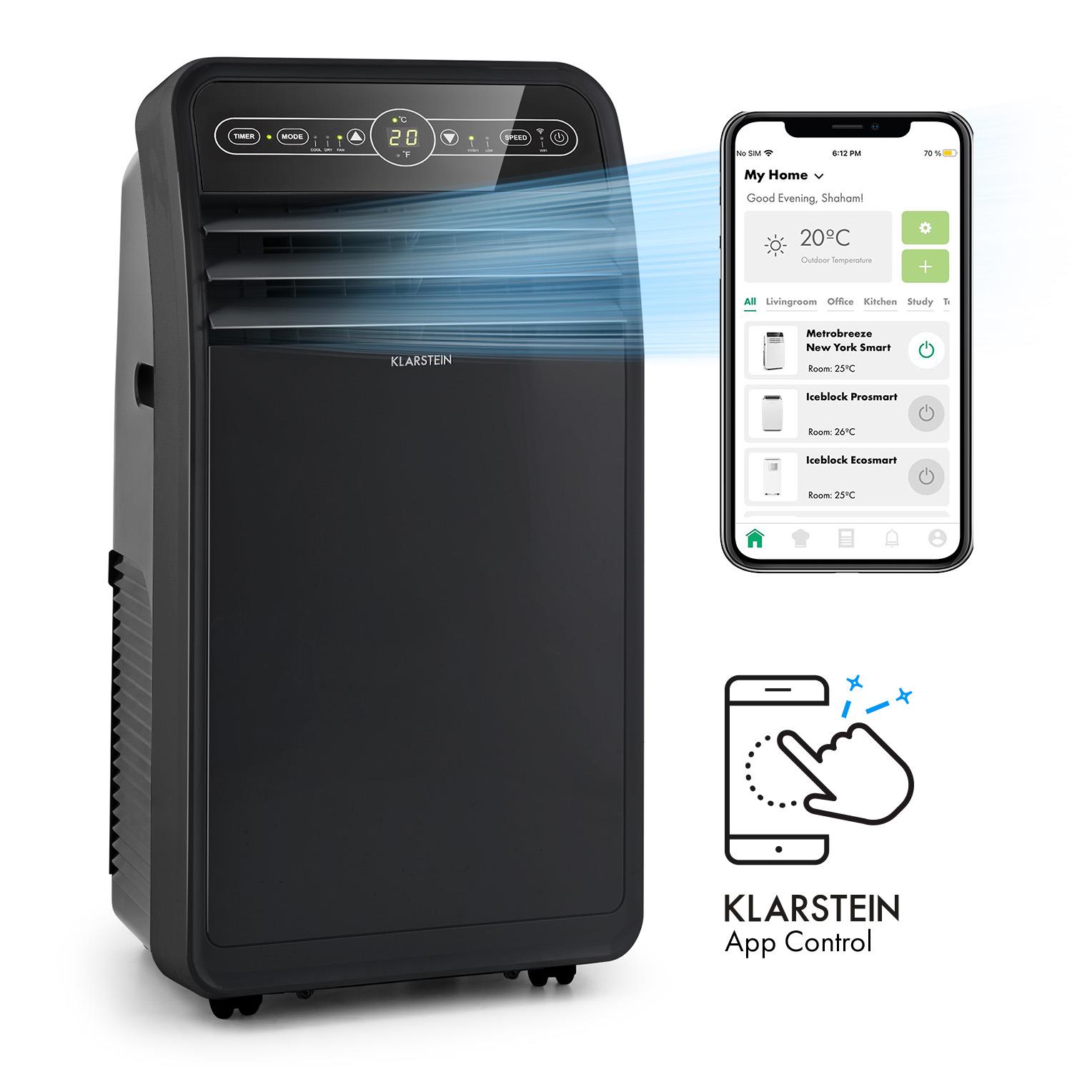 Klarstein 10035797 Metrobreeze New York Smart 7k mobile Klimaanlage 7000 BTU-2 1 kW EEC A Fernbedienung, schwarz